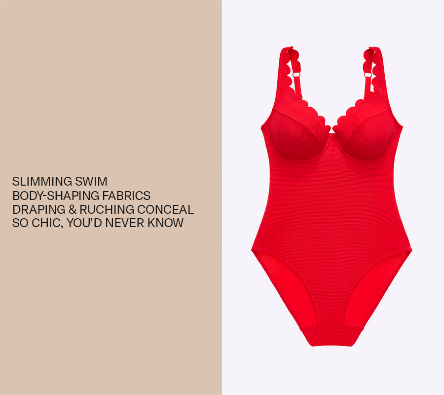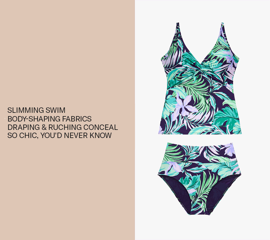 There's a slenderizing or slimming swimsuit for every body type, so don’t worry about not being able to flaunt your figure, even when wearing a shaping swimsuit. Our tummy control swimwear and slimming swimsuits feature a variety of fun, fashionable touches, from strategic draping to sheer cutouts, zippers and ties. From slimming one-piece swimsuits to tummy control bikini bottoms, with Bare Necessities' collection of the best slimming swimwear, it's a snap to find your new favorite slimming and shaping swimsuits.
