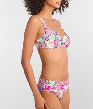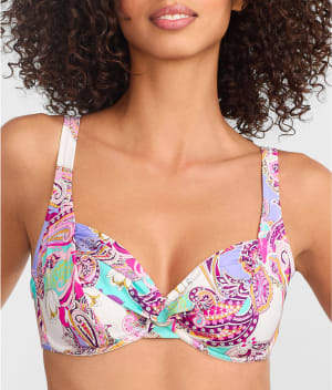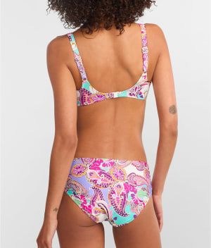 - Soak up the sun in this paisley print twist-front bikini top