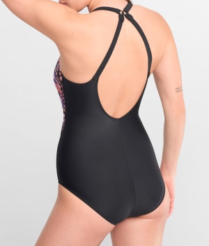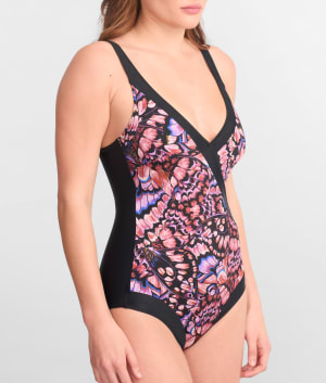 - Have confidence in this sleek one-piece swimsuit with a chic butterfly print
