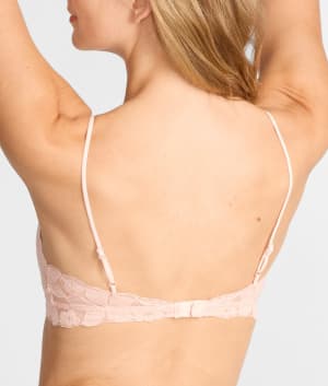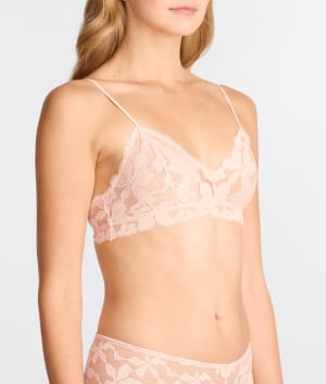 • Wire-free seamed lace cups with a stitched floral pattern & scalloped trim