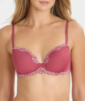 - Ultra-soft underwire t-shirt bra is styled with delicate lace details