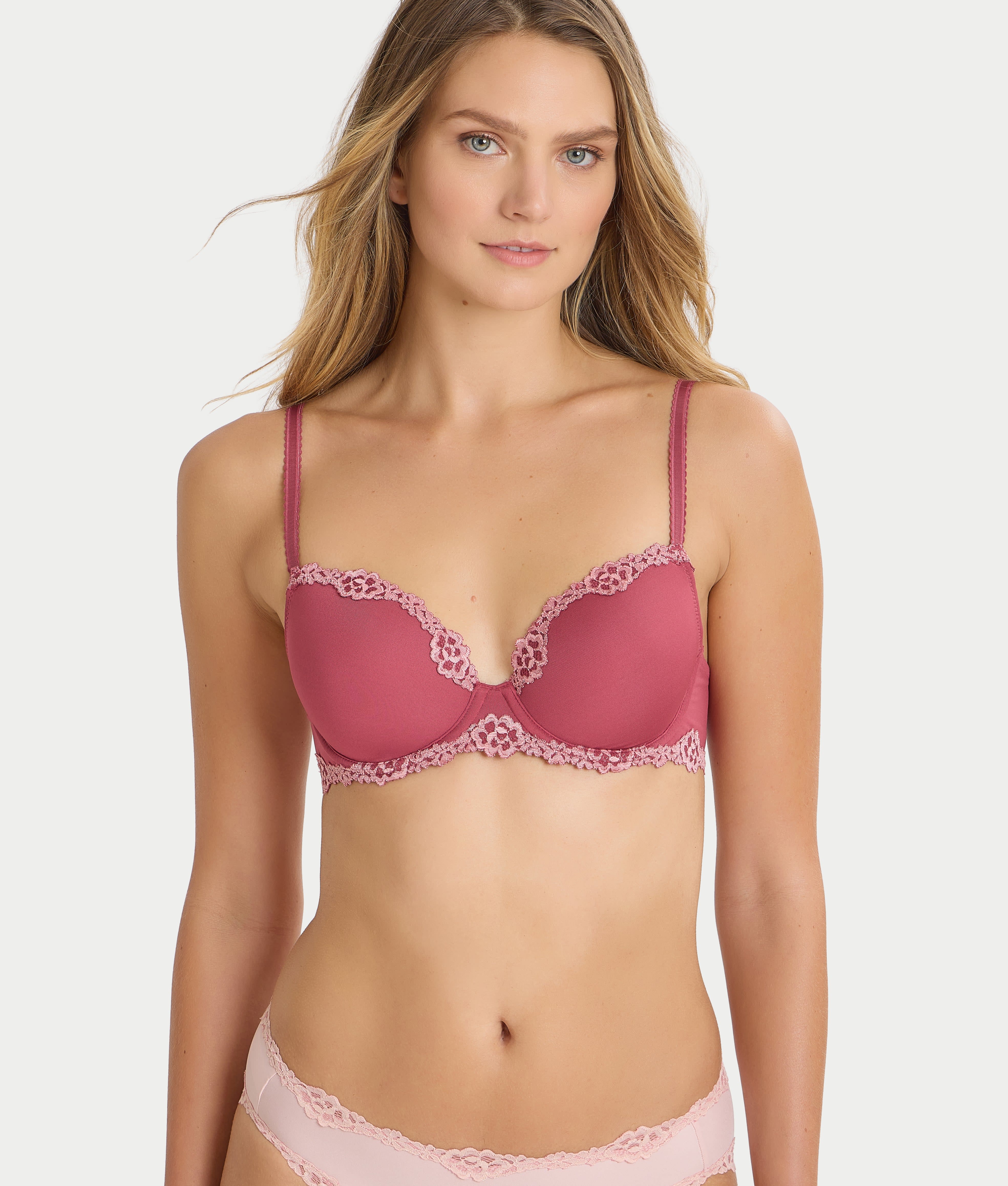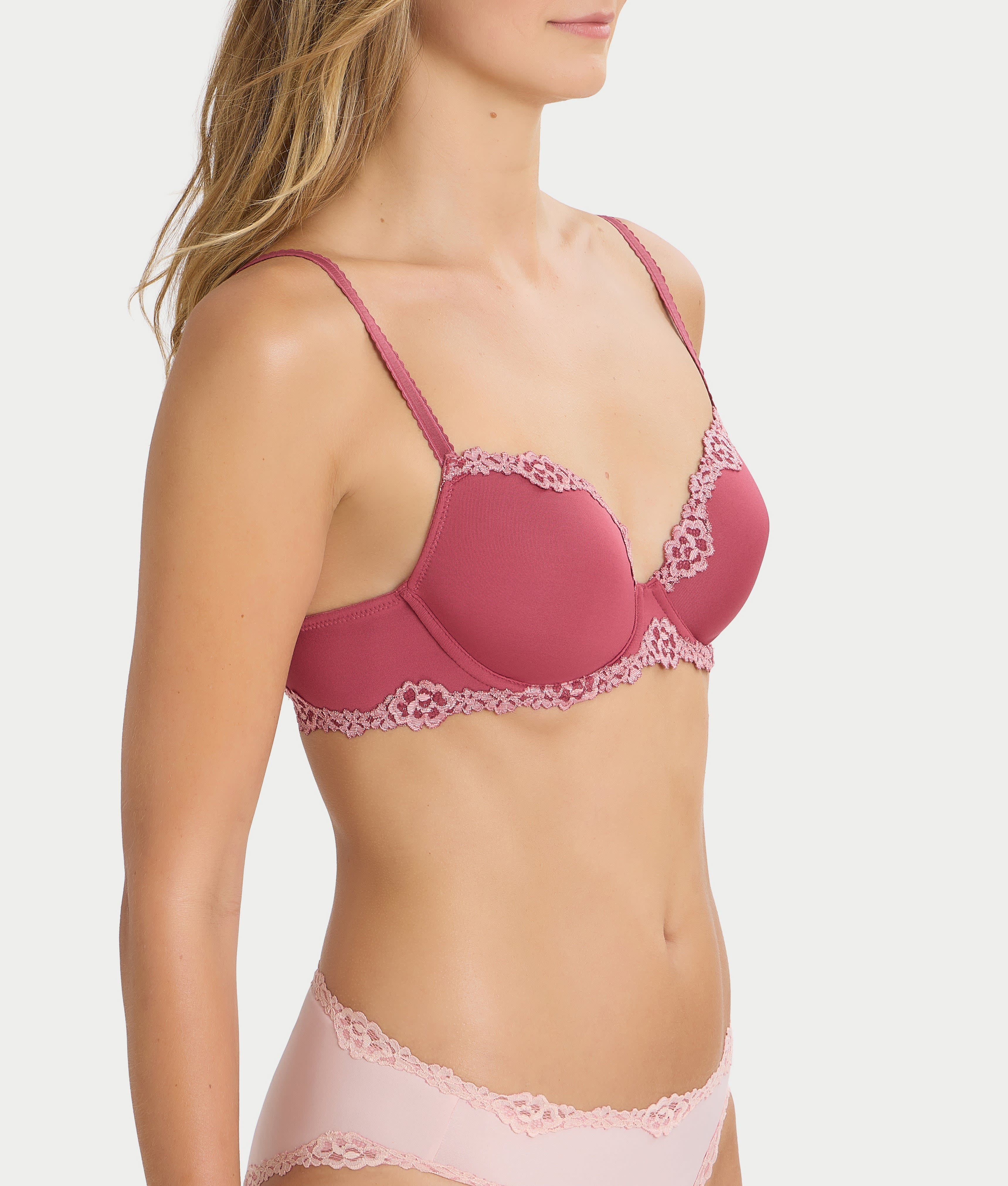 • Ultra-soft underwire t-shirt bra is styled with delicate lace details