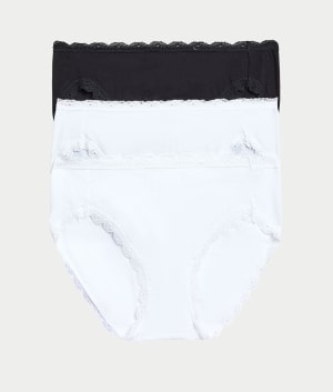 - Everyday modest rise rise hi-cut brief with feminine lace trim