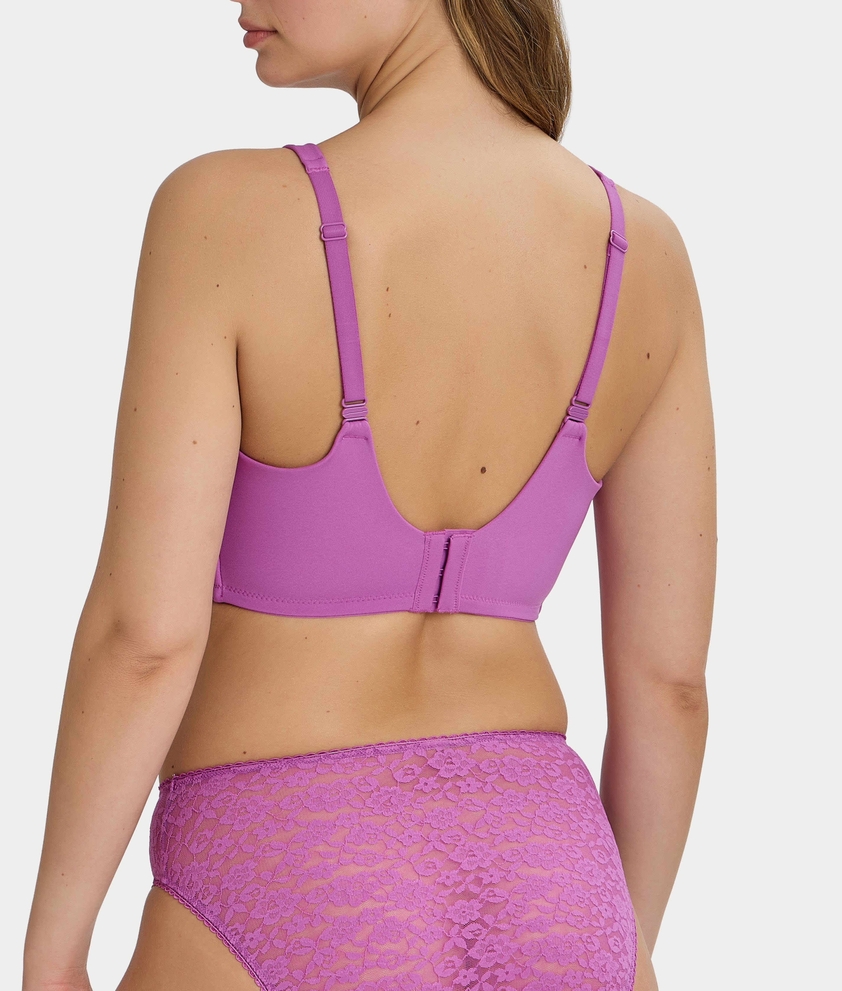 • Minimize bustline up to 1 inch in this wire-free bra