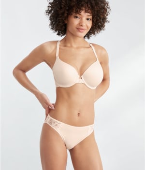 - Smooth stretch microfiber and lace with cotton panel