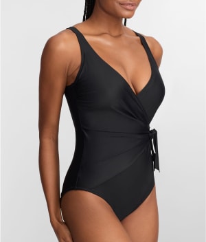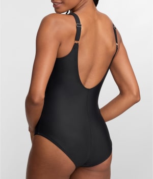 - Make a splash in this chic plunging one-piece