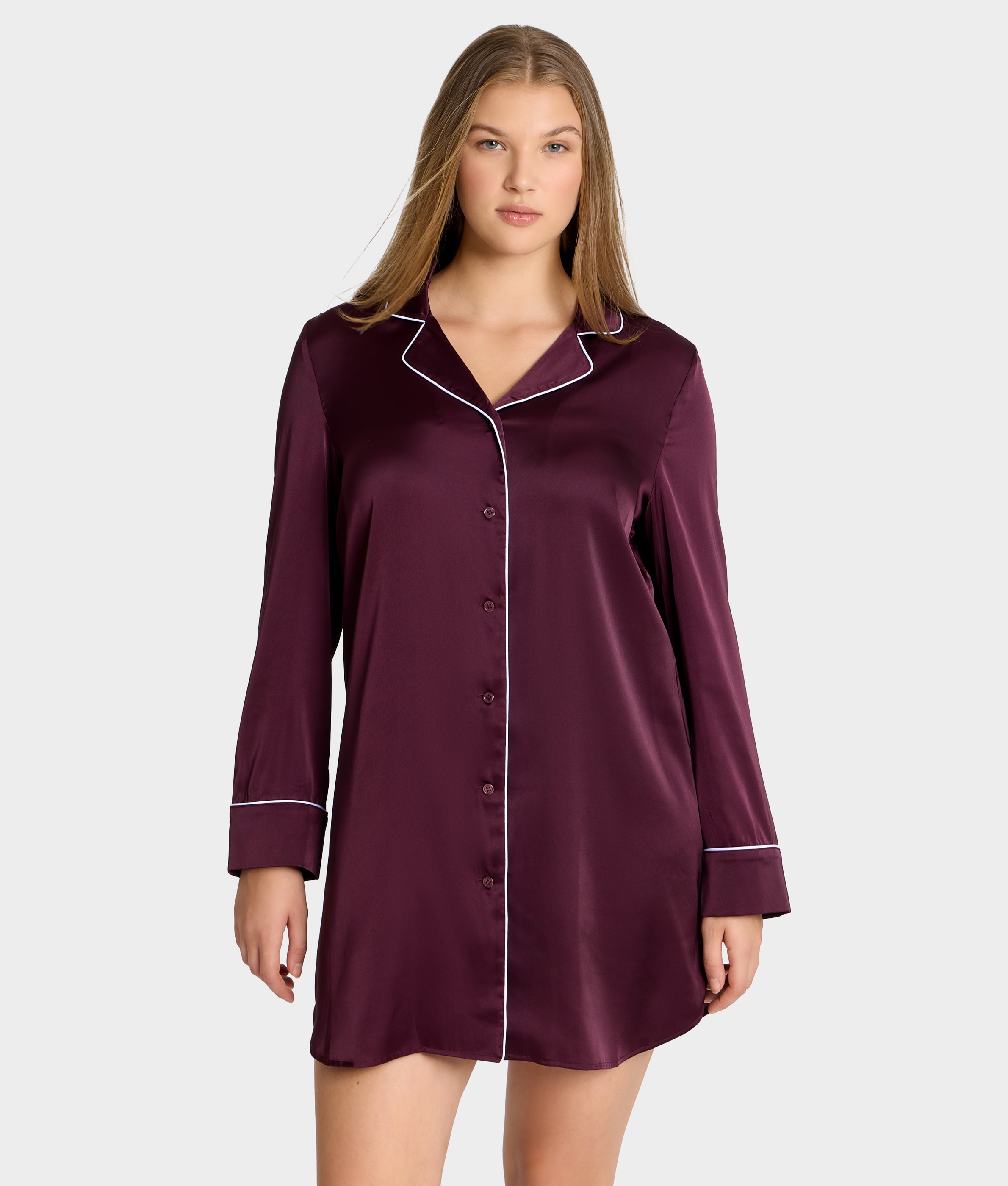 • Sleep in comfort with this ultra-soft satin sleep shirt