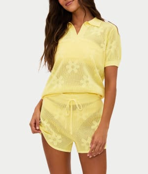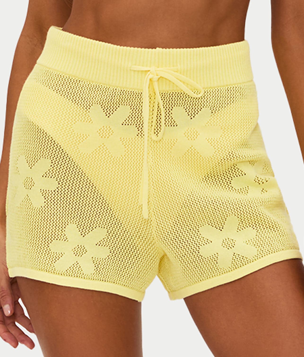 - Head down the shore in these cover-up shorts with a pop of yellow
