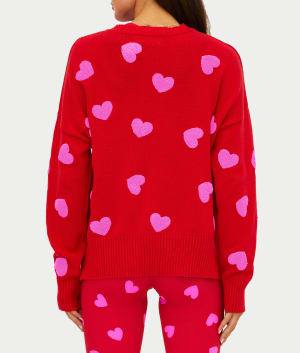 - Embrace cozy style with this sweater featuring a playful heart print