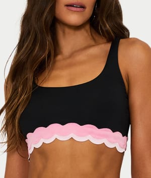 - Turn heads on the sand in this sporty scoop neck bikini top