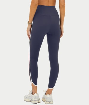 - Feel great while on-the-go in these sporty red, white and blue leggings