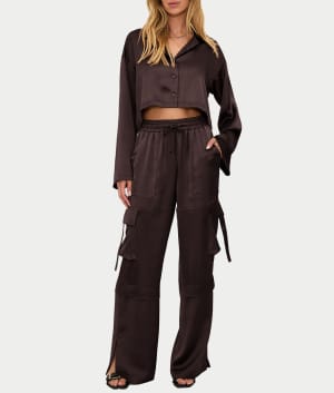 - Relax in this comfortable satin cropped lounge top