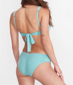 - Wire-free ruched cups with removable foam inserts