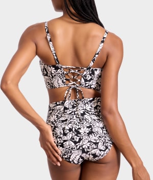 Body: 87% Recycled Nylon, 13% Spandex. Lining: 88% Polyester, 12% Spandex.