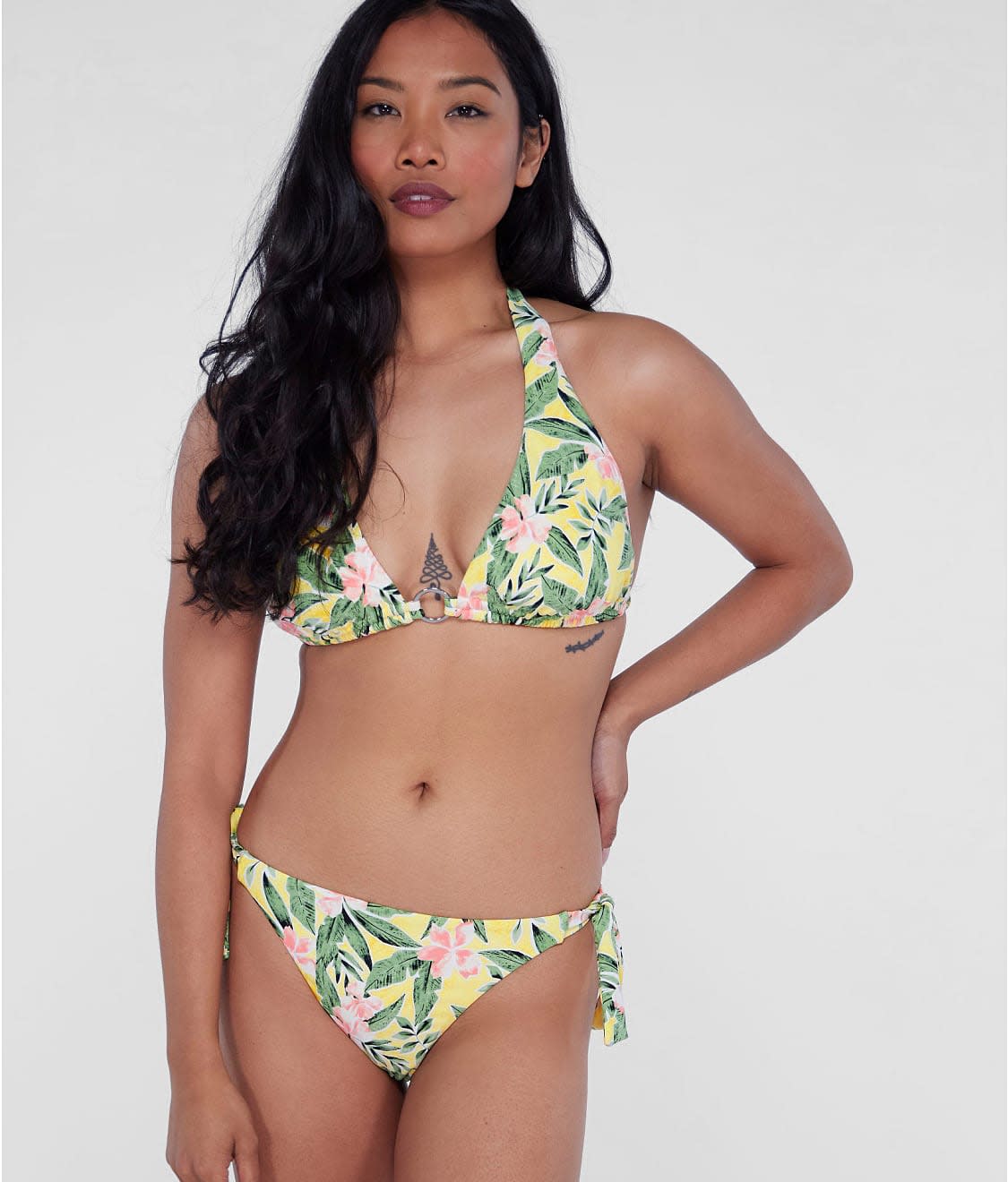 • Make a splash in this chic halter bikini top