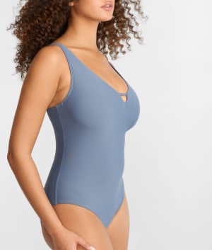Body: 87% Recycled Nylon, 13% Spandex. Lining: 87% Polyester, 13% Spandex.
