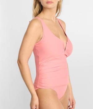 • Ruching along sides for a flattering fitted look