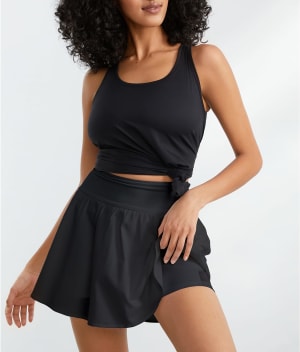 Body: 82% Nylon, 14% Elastane. Skirt: 90% Polyester, 10% Elastane.