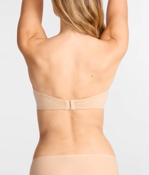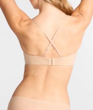 - Tailored strapless push-up bra with a plunging neckline