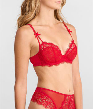 Lace: 100% Nylon. Back: 88% Nylon, 12% Spandex. Cup Lining: 100% Polyester.