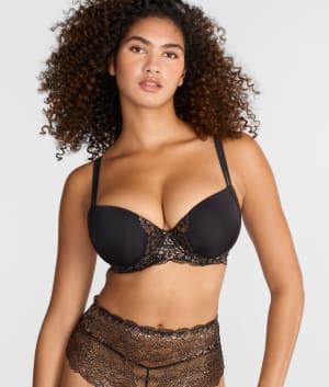 • Plush 4 column, 2 row hook & eye closure; increases with size