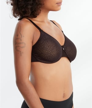 • Lightly lined underwire cups minimize while still creating a rounded, natural shape