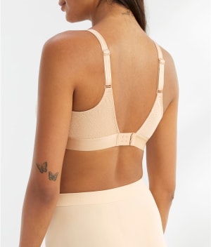 • Minimize your bust in this full coverage, wire-free bra