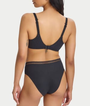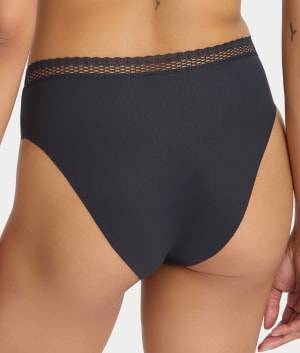- Seamless high rise silhouette with a hi-cut look at the hip