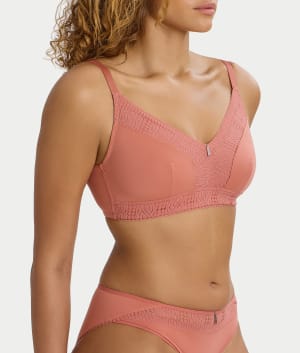 - Full coverage cups with darted seams offer a lifted natural bust effect