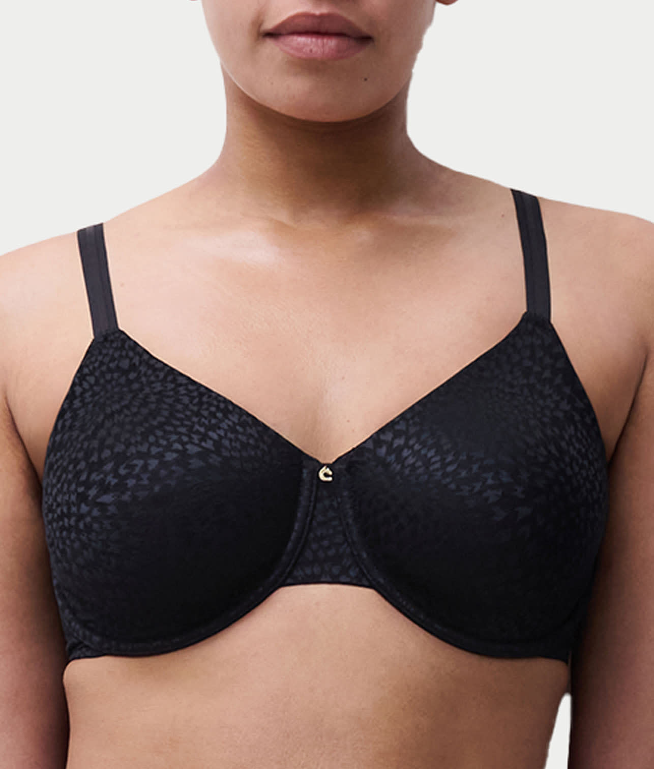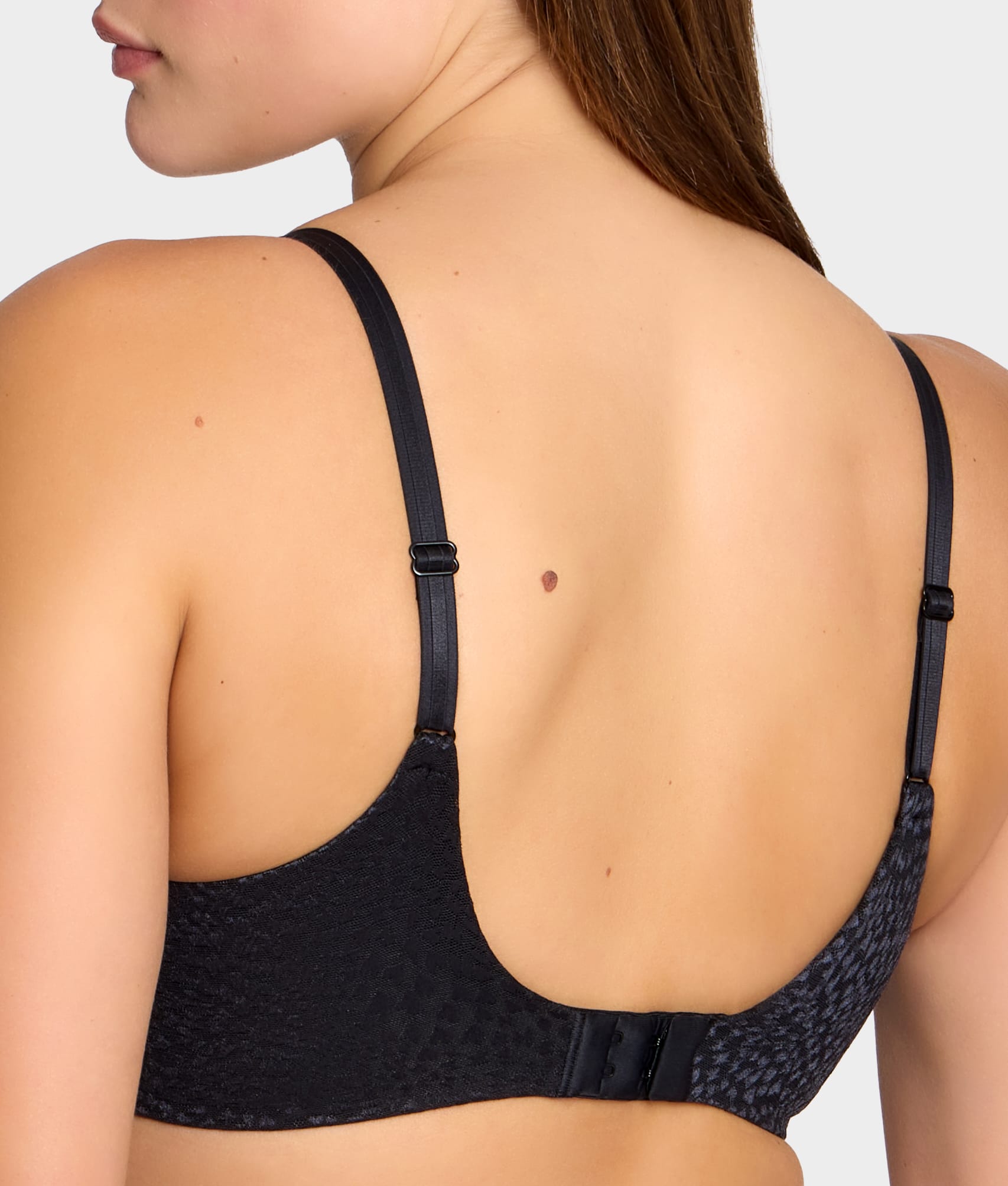 • Unlined underwire cups have a subtle decorative pattern with an opaque knit