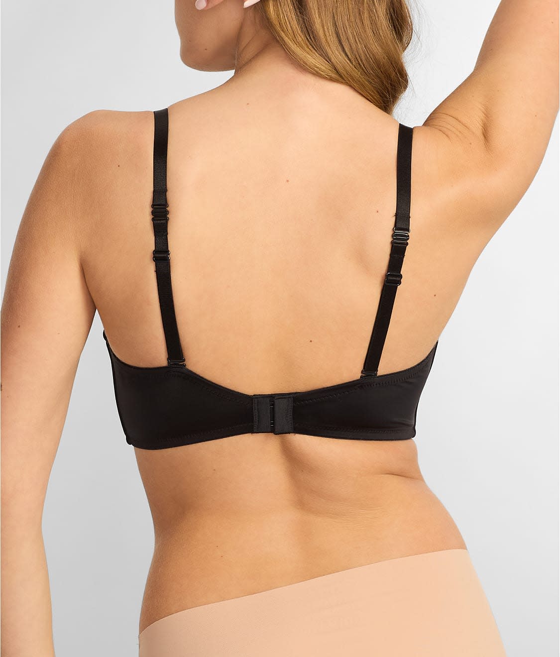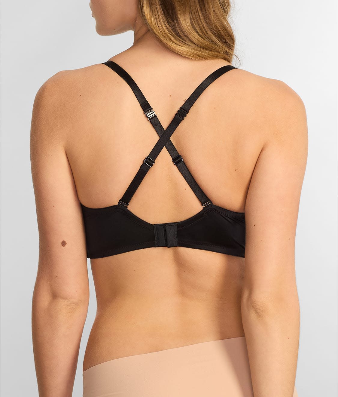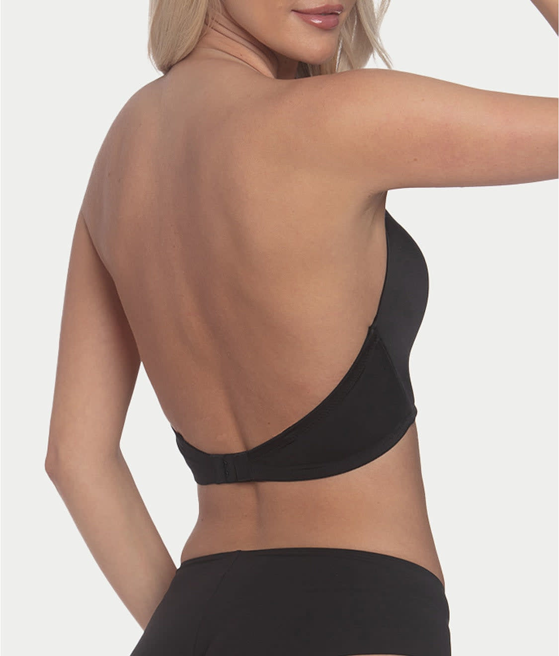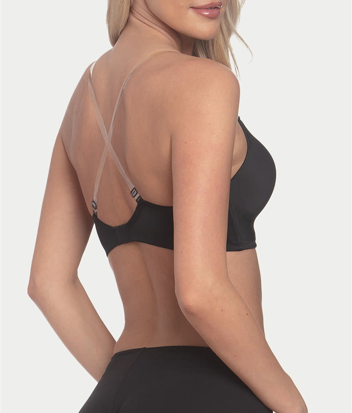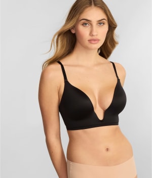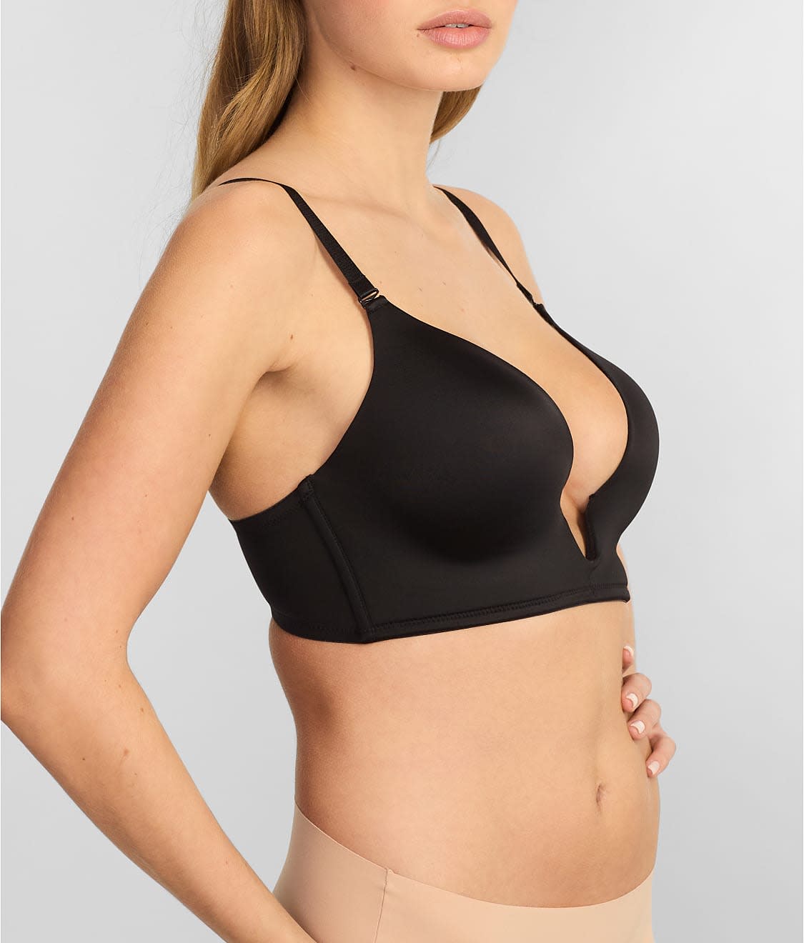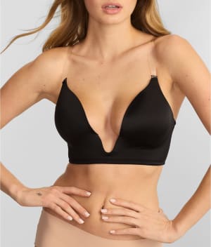 - Sleek 4-way convertible bra with deep U-wire plunge front