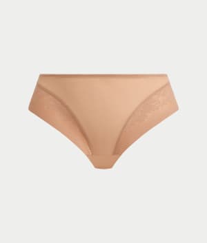 Stretch lace on leg edges lays flat and offers a contemporary design