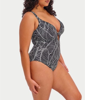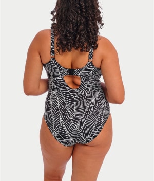 - Lounge poolside in this black & white fern print one-piece
