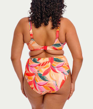 • Feel refreshed in this plunge bikini top with zesty mango & mandarin tones