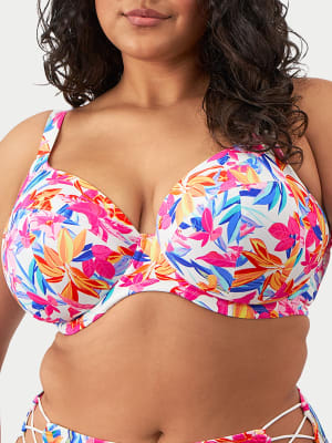 - Feel like you're in a tropical daydream in this underwire plunge bikini top