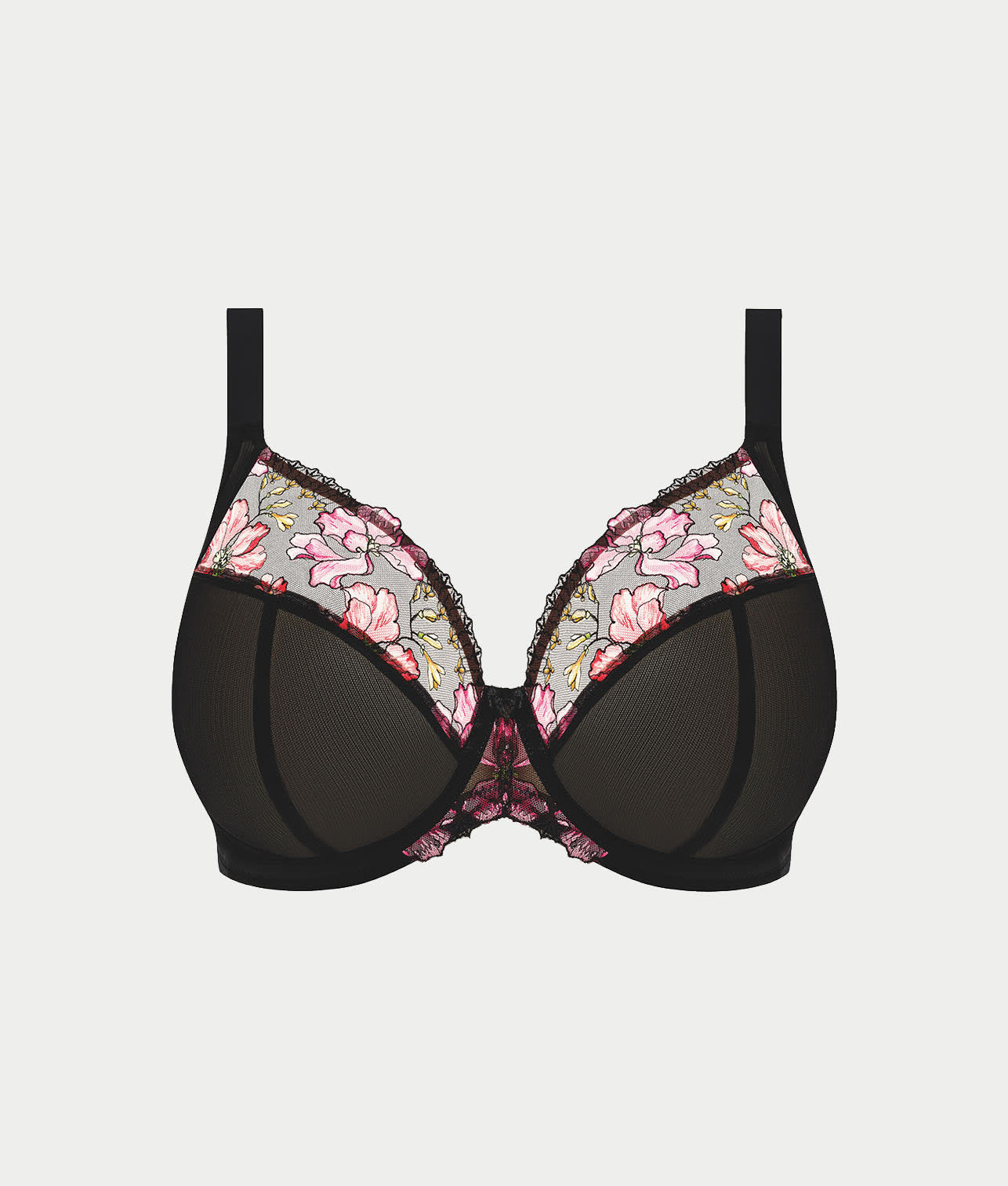 - 3-part seamed cups with precision printed embroidery