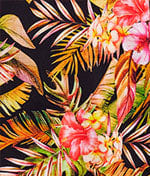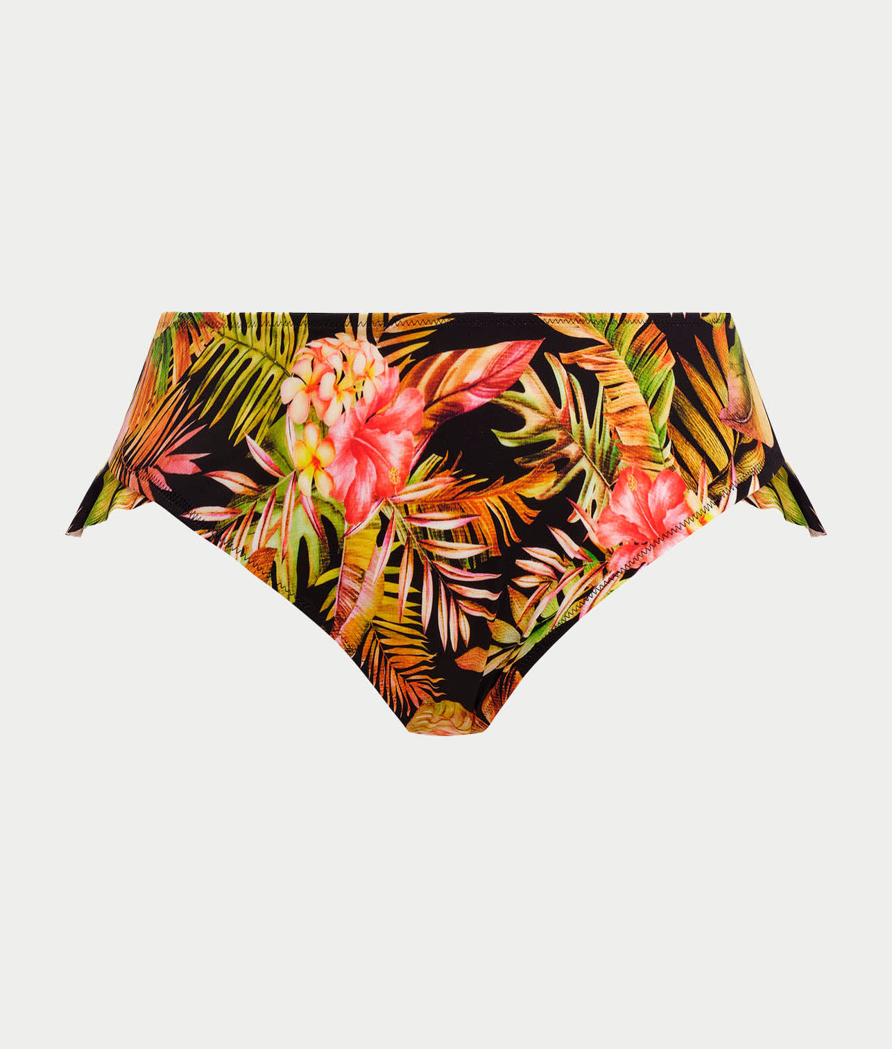 - Bold tropical print bikini bottom with leafy greens and hibiscus pinks