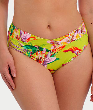 - Vibrant higher waist swim bottom with tropical passion flowers