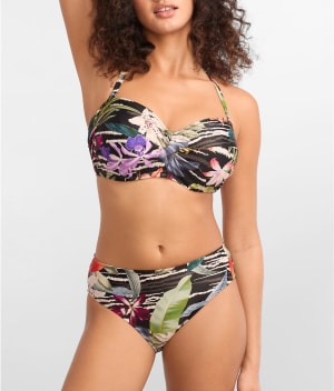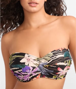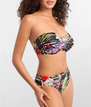 - Hit the beach in this bandeau bikini top with tropical leaves