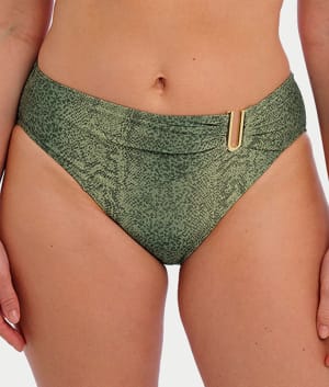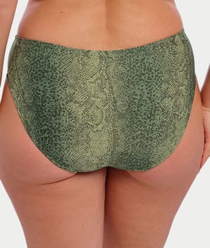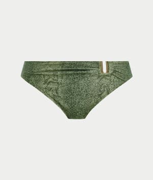 - Mid-rise bikini bottom with an abstract snake print in lush green tones