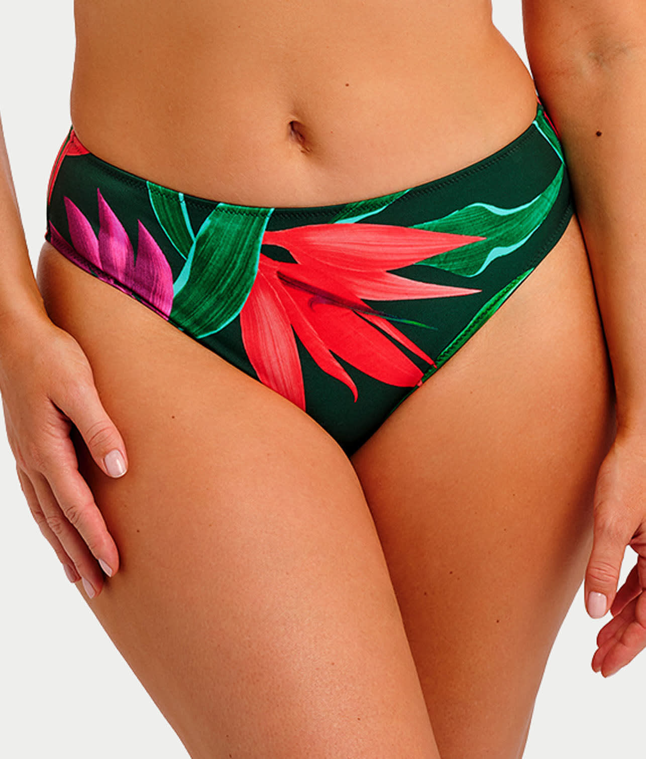 - Feel the island breeze in this tropical print bikini bottom
