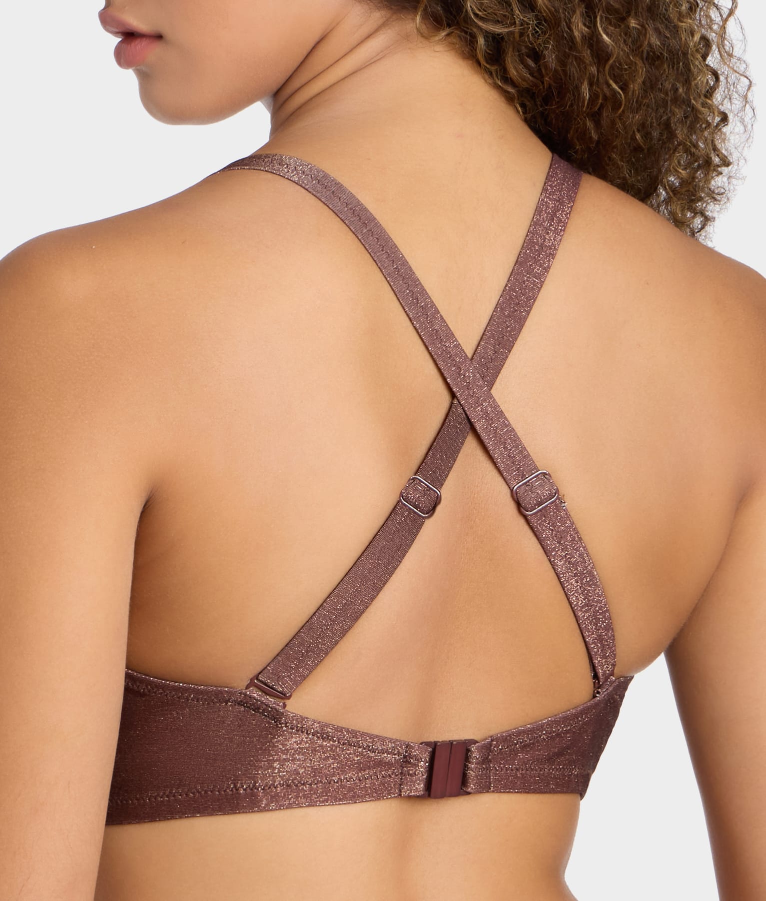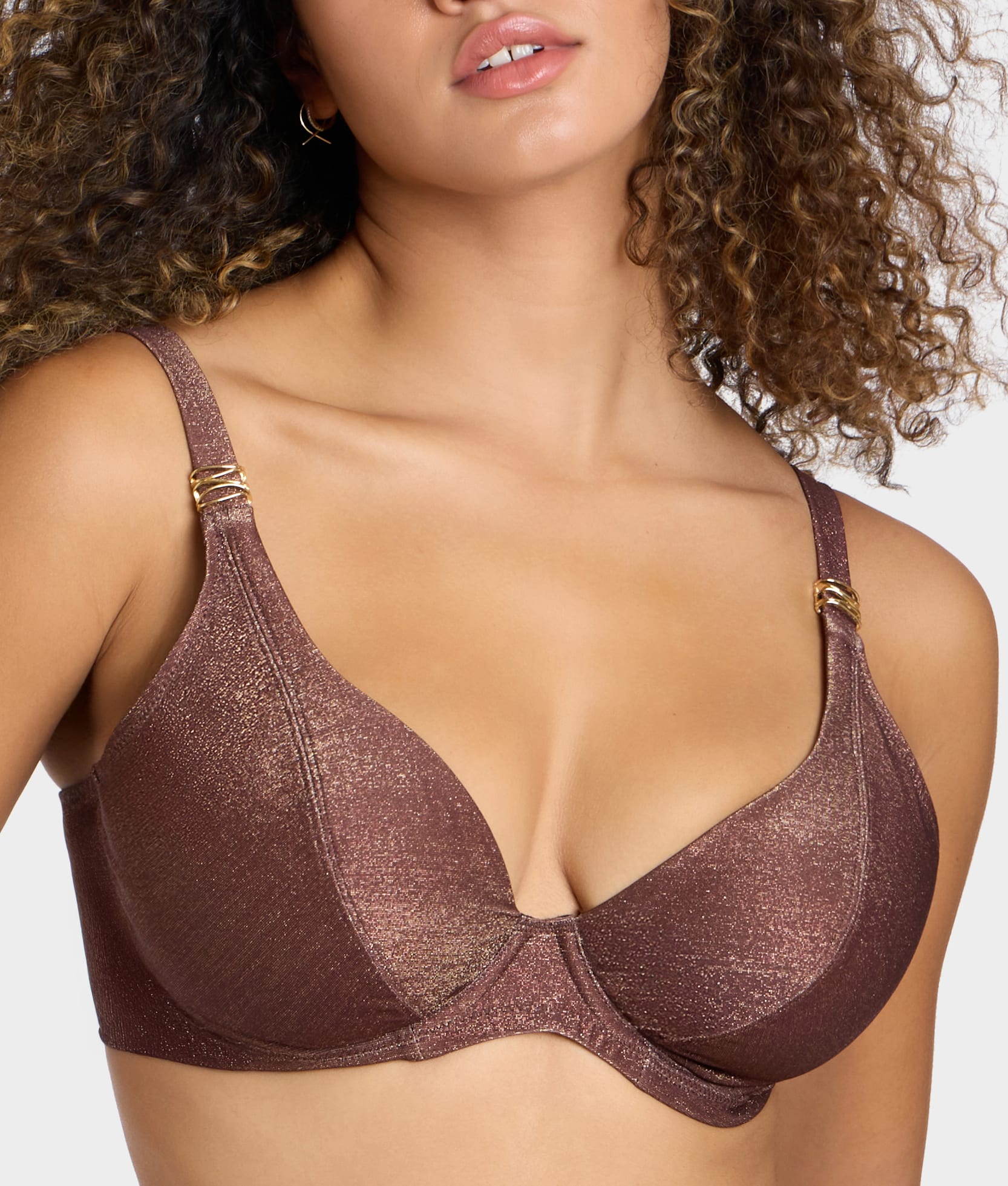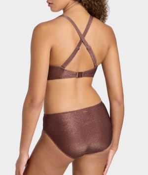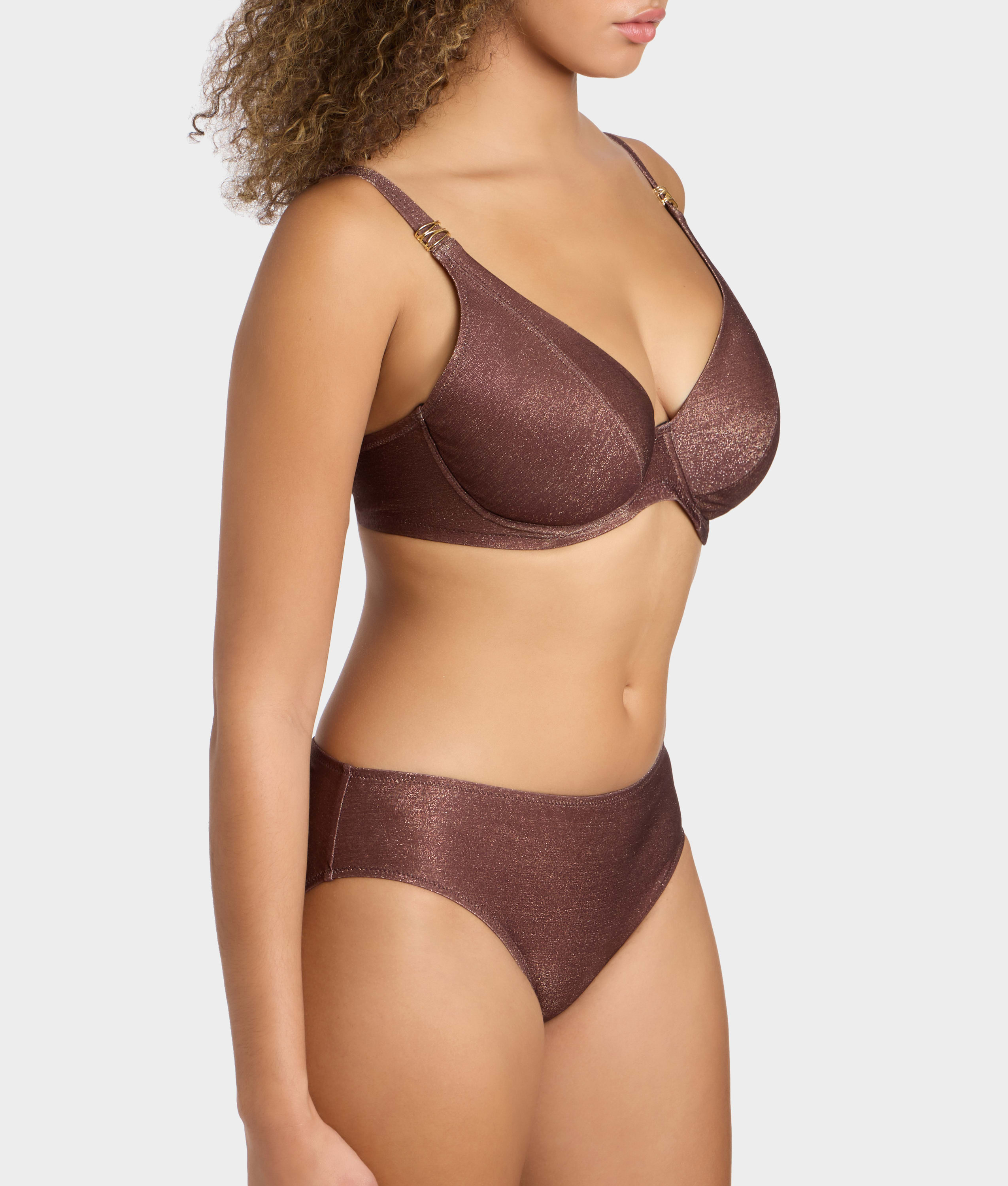 Body: 61% Polyester, 15% Polyamide, 13% Elastane, 11% Metallic. Cup Lining: 72% Polyamide, 28% Elastane. Wing Lining: 86% Polyamide, 14% Elastane.