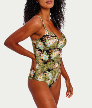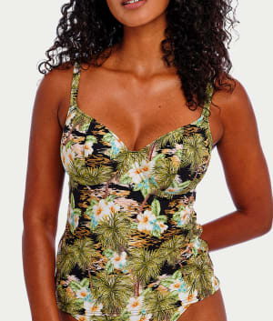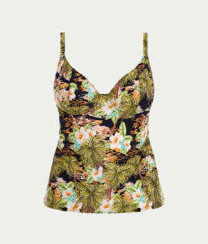 - Head to the tropics in this underwire tankini with hibiscus motifs