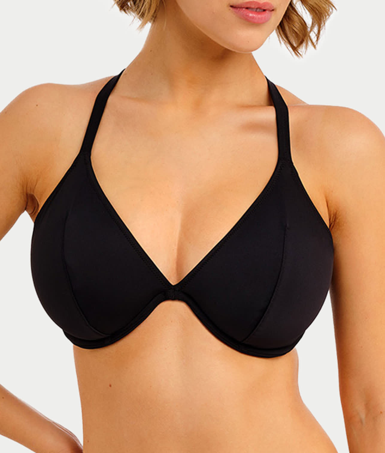 • Make a statement in this plunging underwire bikini top