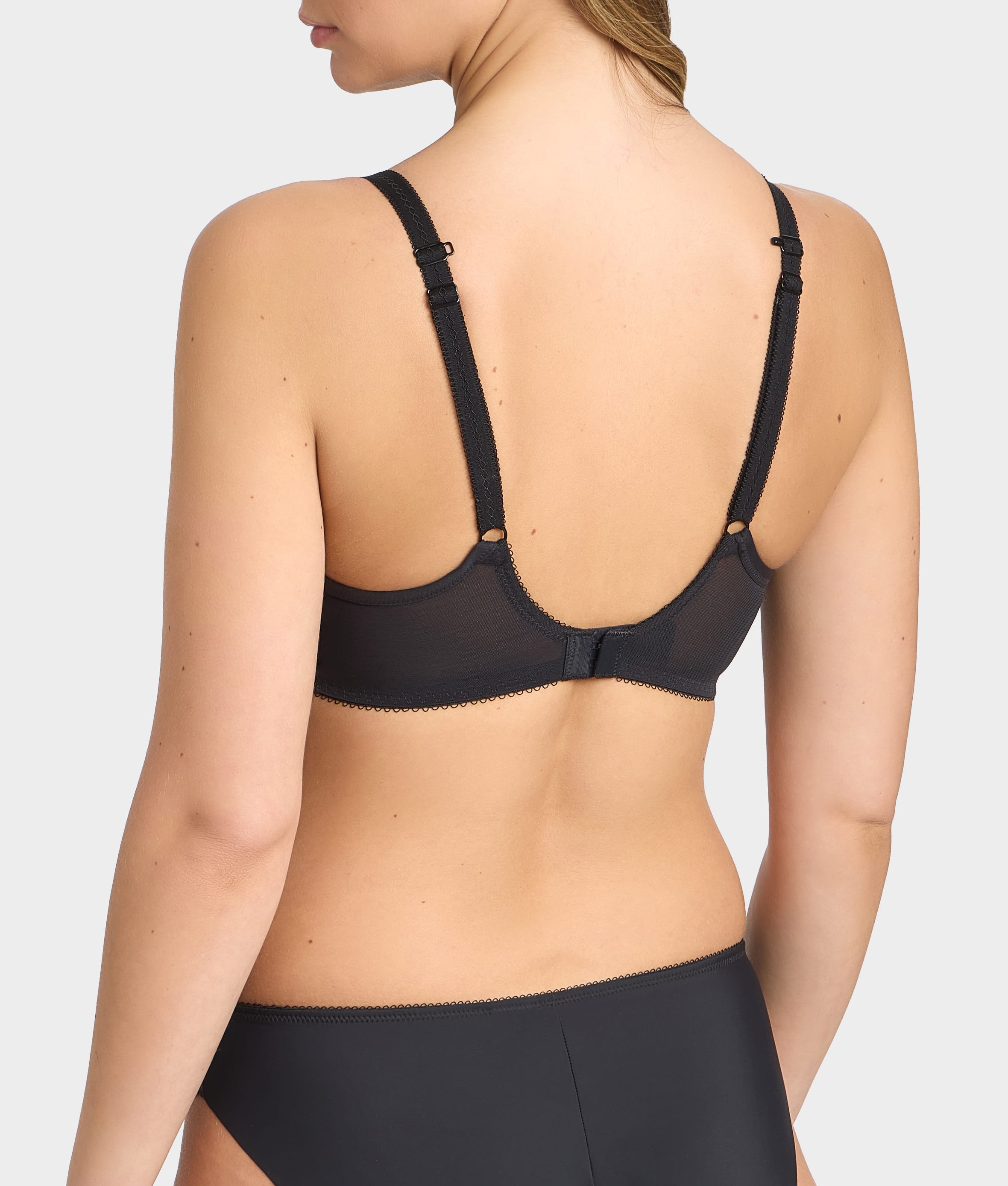 - Seamless spacer fabric lined underwire cups for a rounded shape
