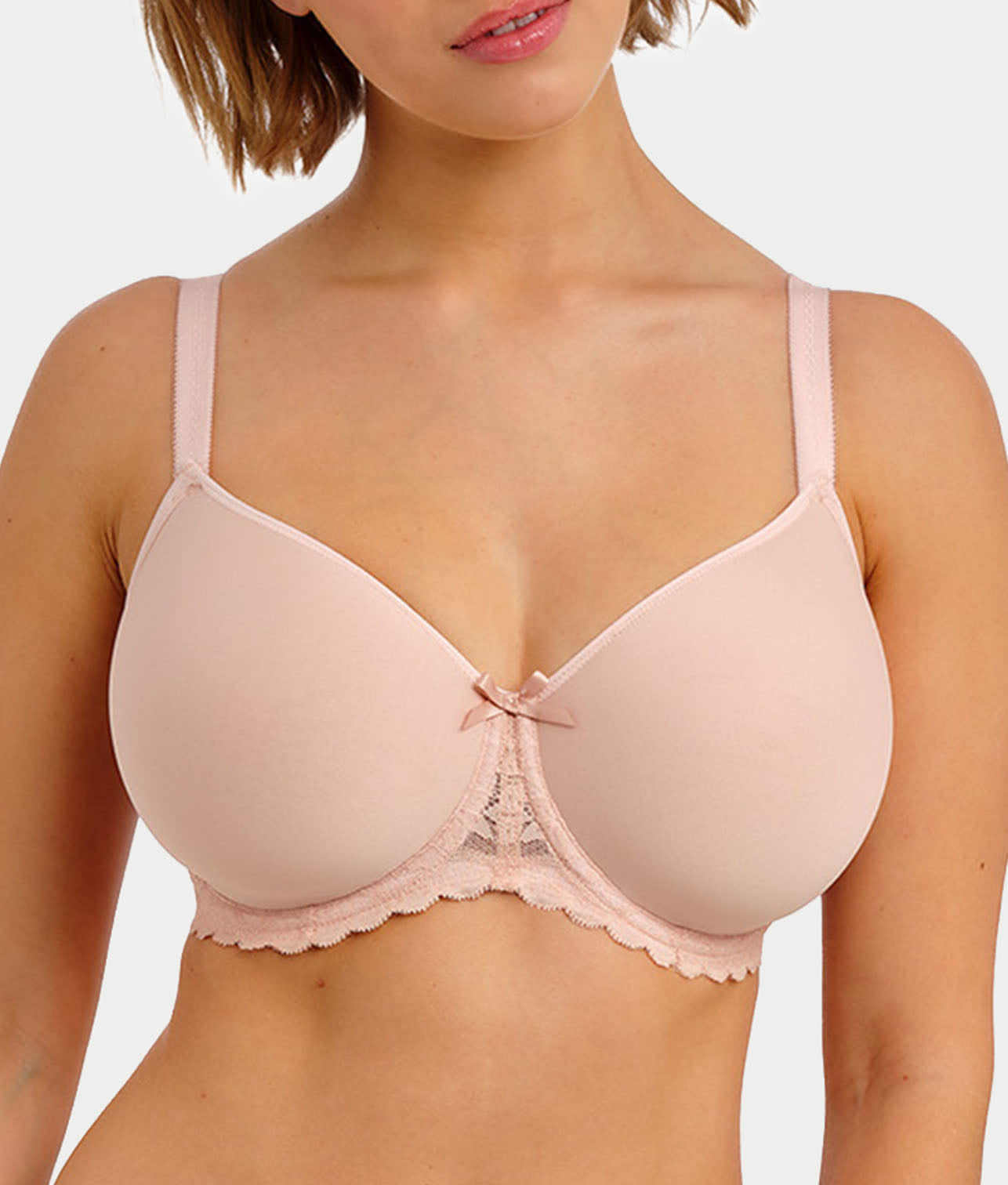 - Seamless spacer fabric lined underwire cups for a rounded shape