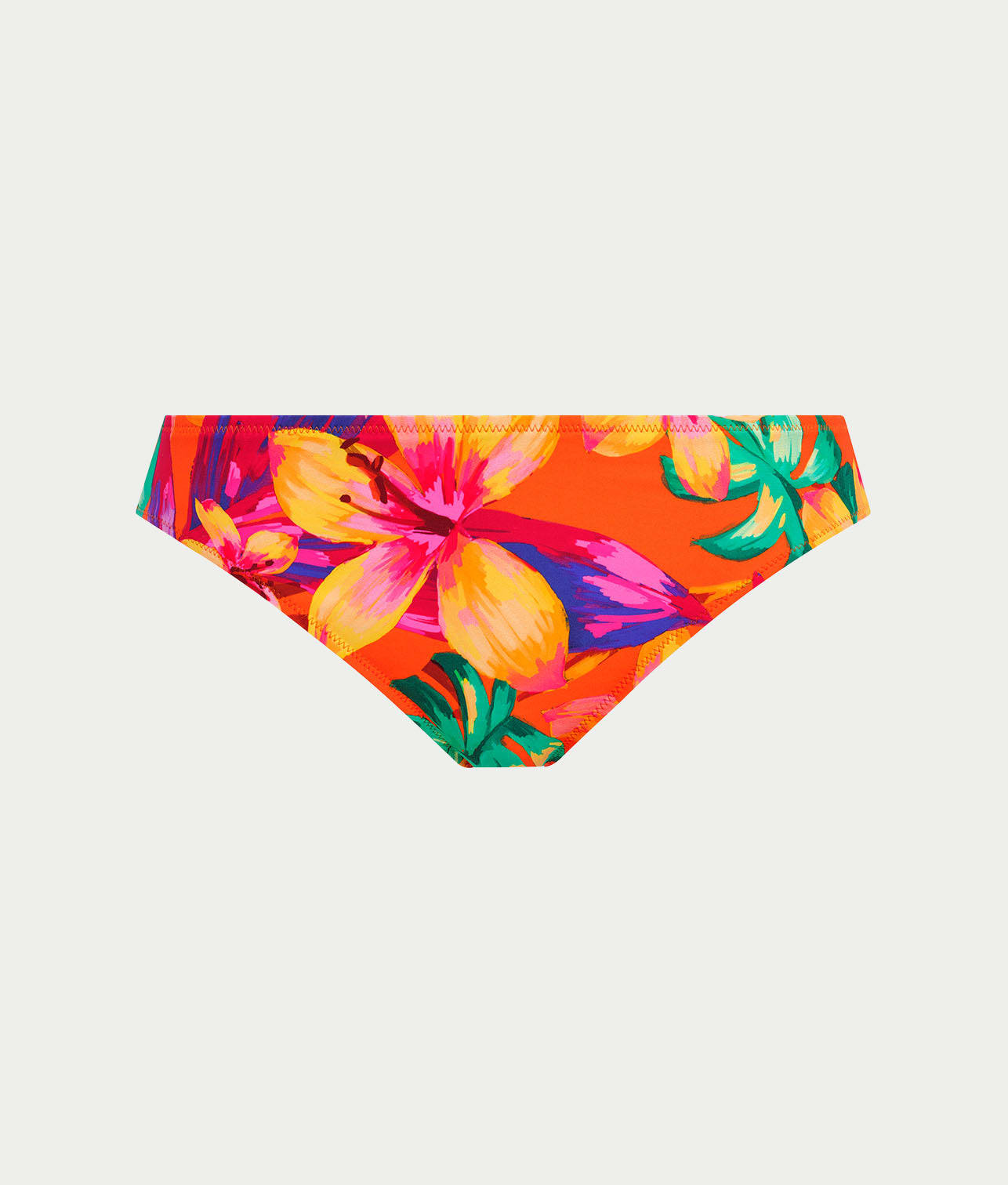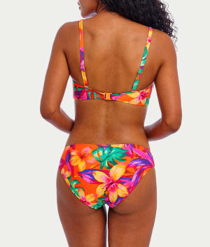 - Low rise bikini bottom with a bright tropical print