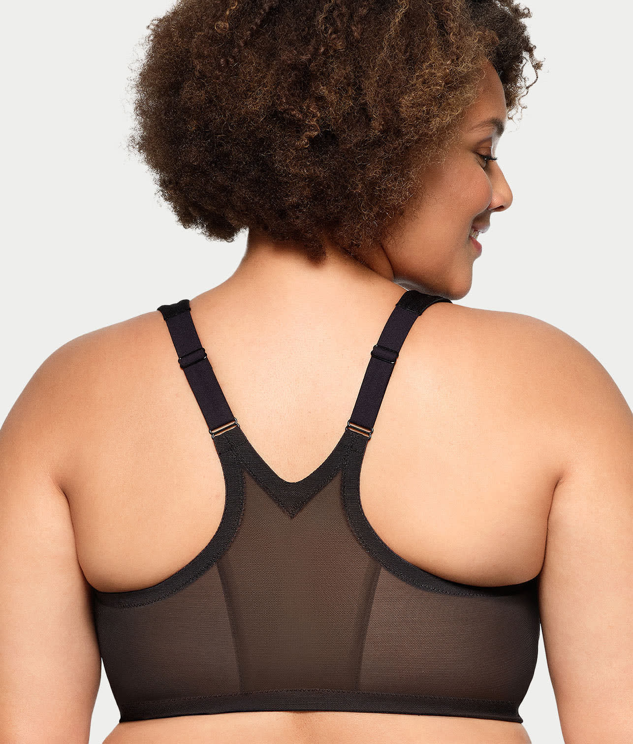 - Non-stretch microfiber cups and mesh wings
