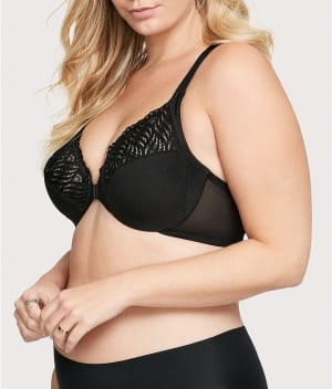 • Plunging front-close, underwire bra with lace T-back