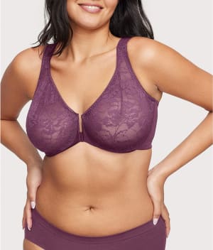 WonderWire Lacey T-Back Front-Close Bra Cup Size